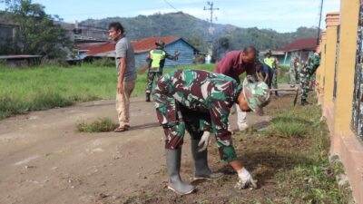Babinsa Koramil 01/Lut Tawar Laksanakan Gotong Royong Bersama Warga di Desa Binaan