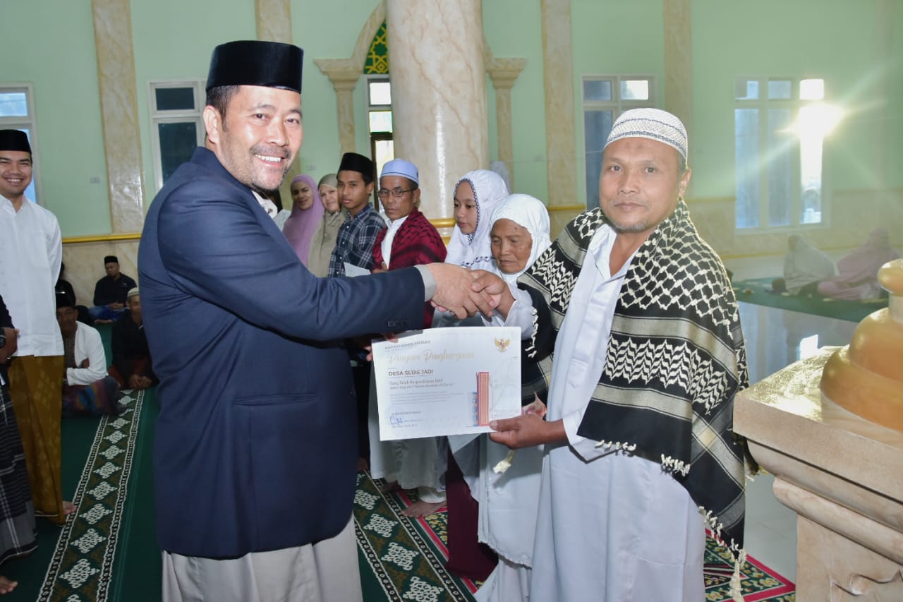 Penjabat (Pj) Bupati Bener Meriah, Drs. Haili Yoga, M.Si melaksanakan shalat subuh berjamaah di Masjid Al-Iklas sekaligus memberikan piagam penghargaan untuk Kampung Sedie Jadi, Kecamatan Bukit, Jum’at(14/6/2024).