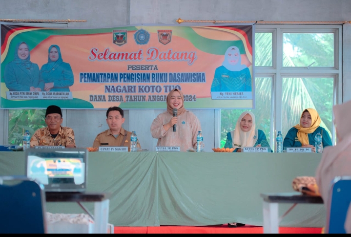 Sijunjung – medianasionaljurnalis.com Ketua TP PKK Kabupaten Sijunjung Ny. Riri Benny Dwifa Membuka Acara Pemantapan Pengisian Buku Dasawisma di Nagari Koto Tuo Kecamatan IV Nagari, Selasa ( 25/6/2024).