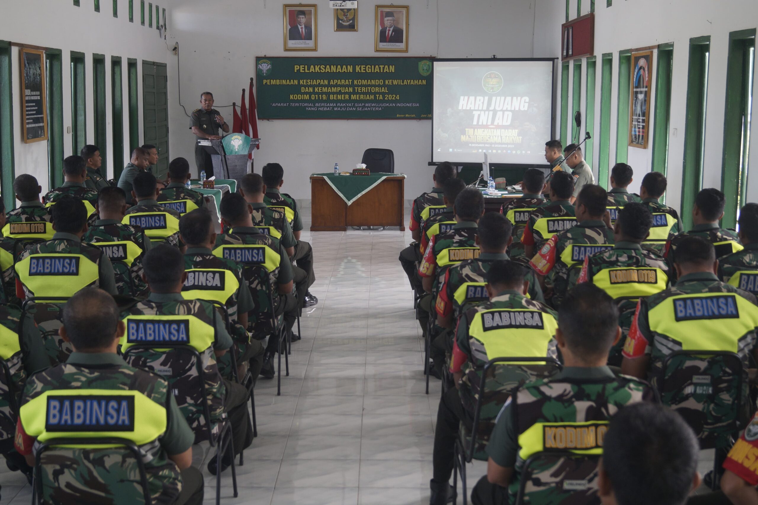 Kasdim berharap seluruh aparat kewilayahan khususnya Babinsa jajaran Kodim 0119/Bener Meriah dapat memahami dan mampu melaksanakan tugas pembinaan teritorial