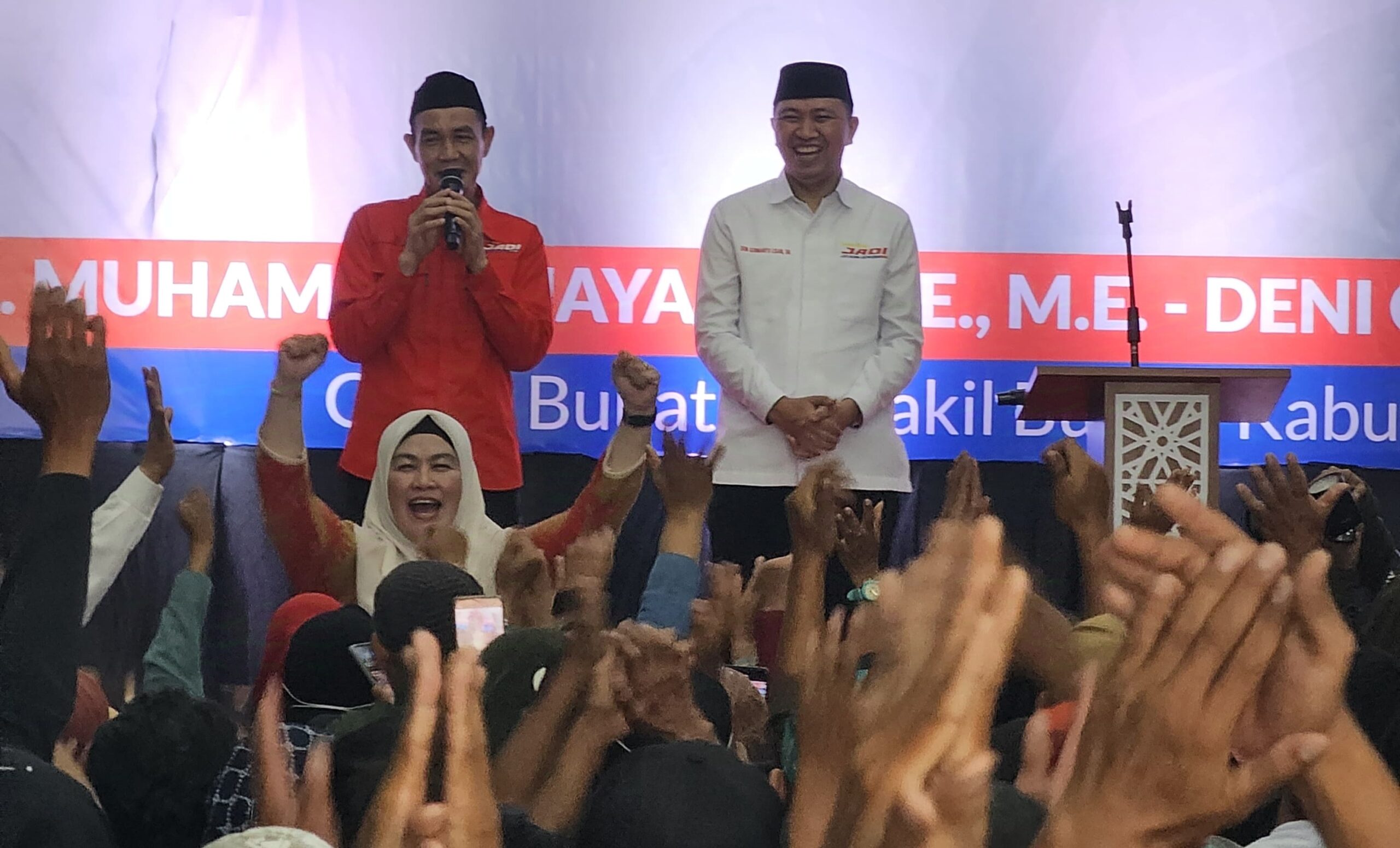 BERANI For JADI, Atas Izin Allah kita akan menang, sembari meneriakkan yel yel, “Bismillah JADI Jayadin Deni Bupati ku, menang menang menang”, teriaknya.