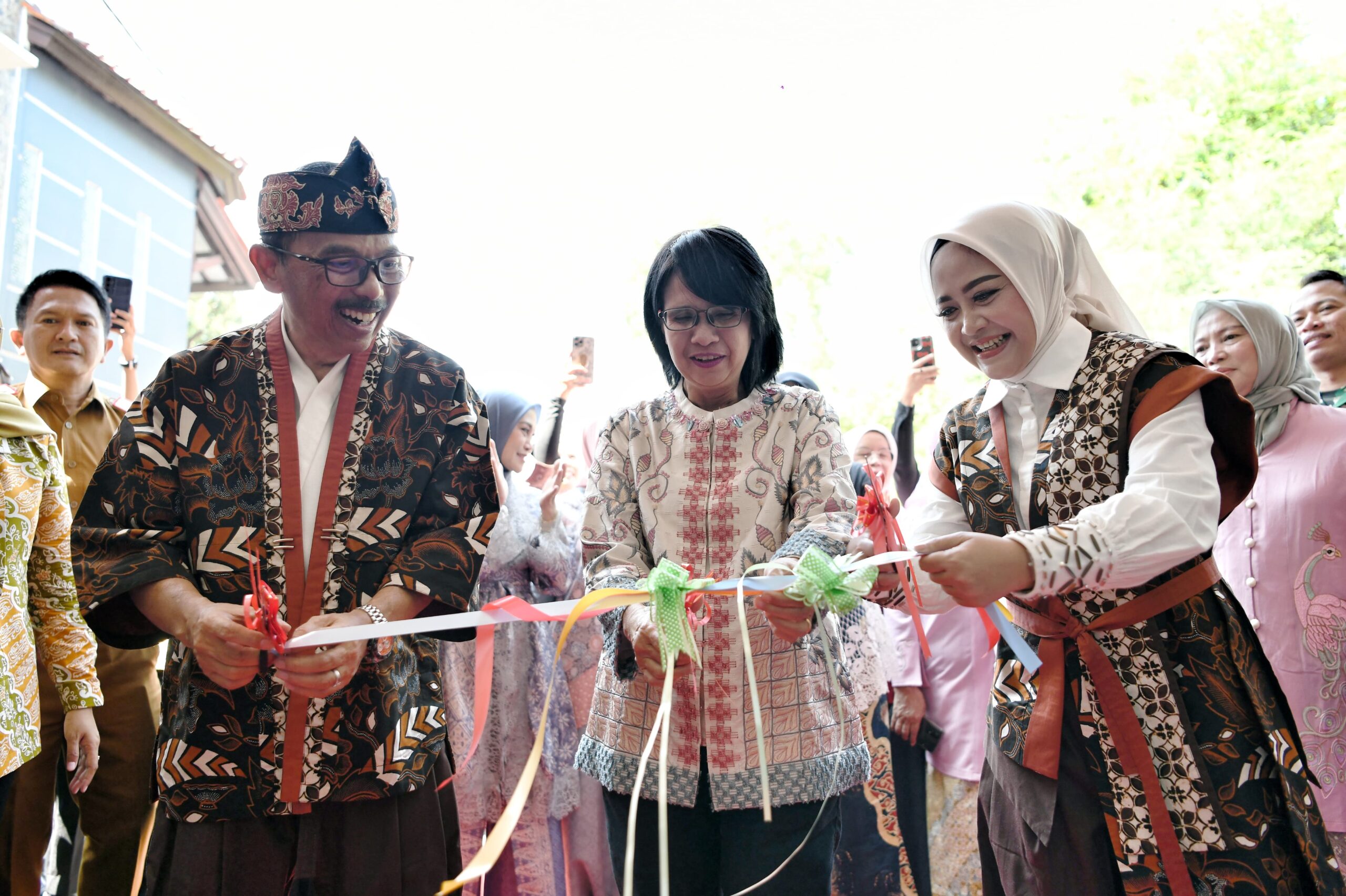 Bersama Amanda, Pj Bupati Kuningan Iip Hidajat dan PjbKetua Dekranasda Kabupaten Kuningan Susi Widyawati ikut meresmikan Gedung Gerai tersebut.
