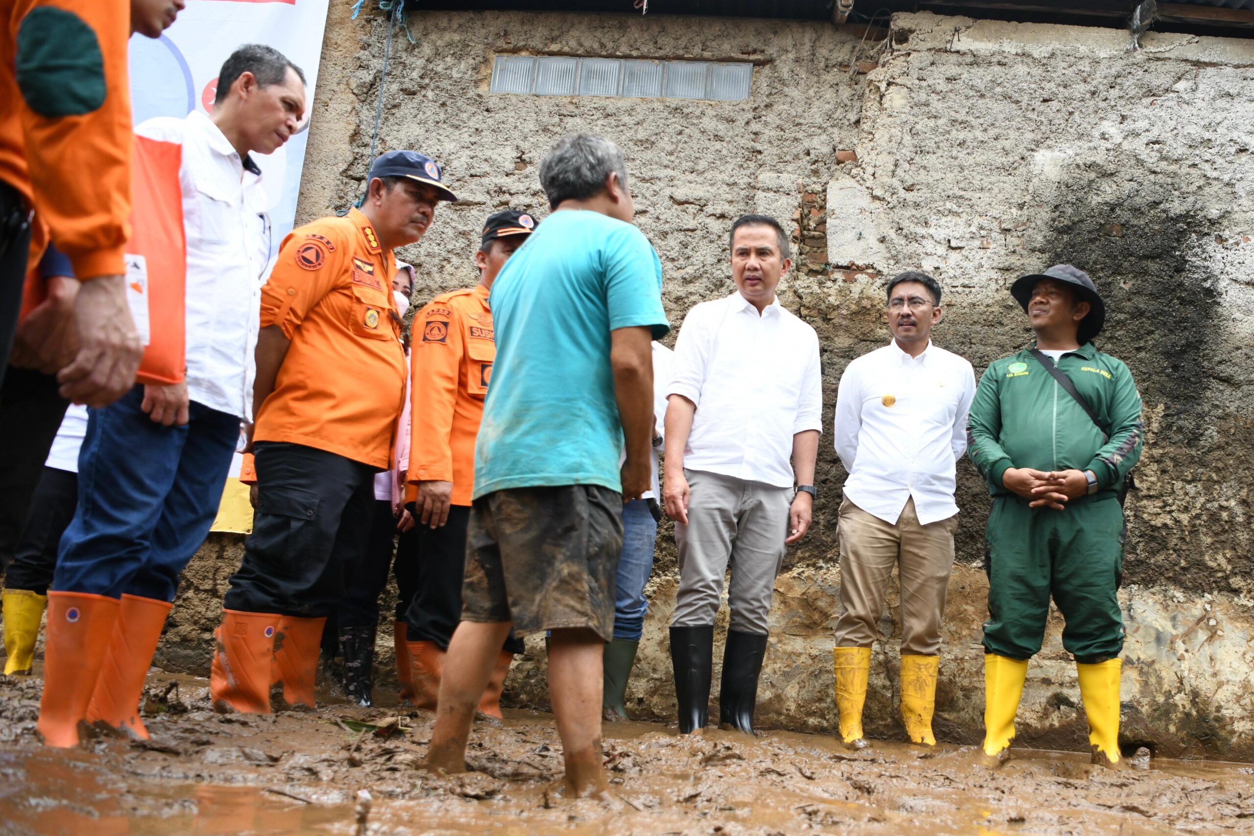 Langkah pertama, Penjabat Gubernur Jabar Bey Machmudin langsung turun ke lokasi banjir di Desa Banjaran Wetan, Kecamatan Banjaran, Kabupaten Bandung, Rabu (6/11/2024).