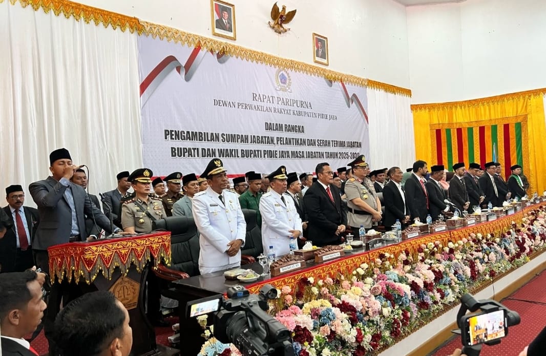 Sementara itu, dalam sambutan perdananya, Bupati Pidie Jaya, H. Sibral Malasyi, menegaskan komitmennya untuk membawa perubahan positif bagi masyarakat dengan prinsip transparansi, kolaborasi, dan pelayanan optimal.