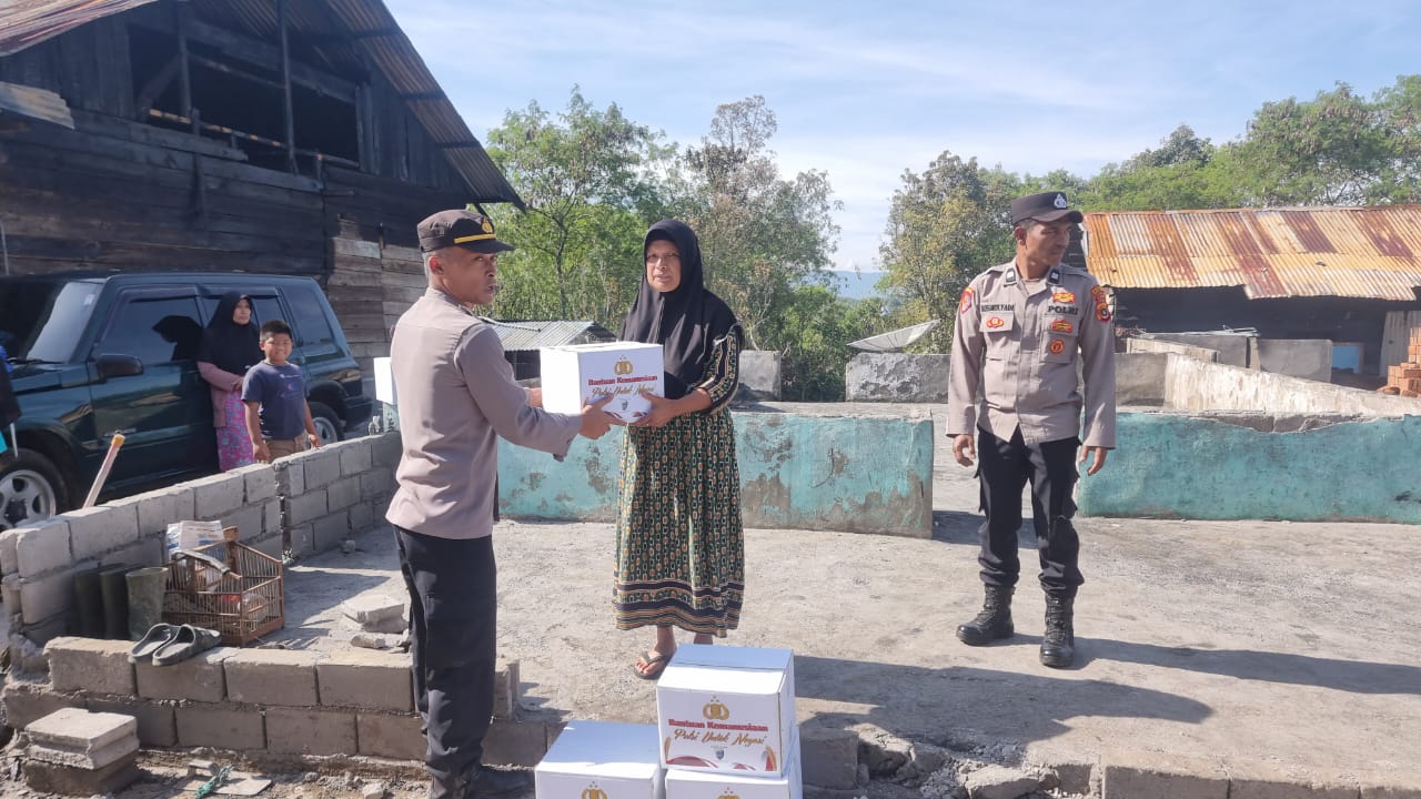 Kapolsek Permata Iptu Taufik Kurniawan, S.I.Kom, didampingi Reje Kampung langsung menyerahkan bantuan yang berasal dari Kapolres Bener Meriah AKBP Tuschad Cipta Herdani, S.I.K., M.Med.Kom,.
