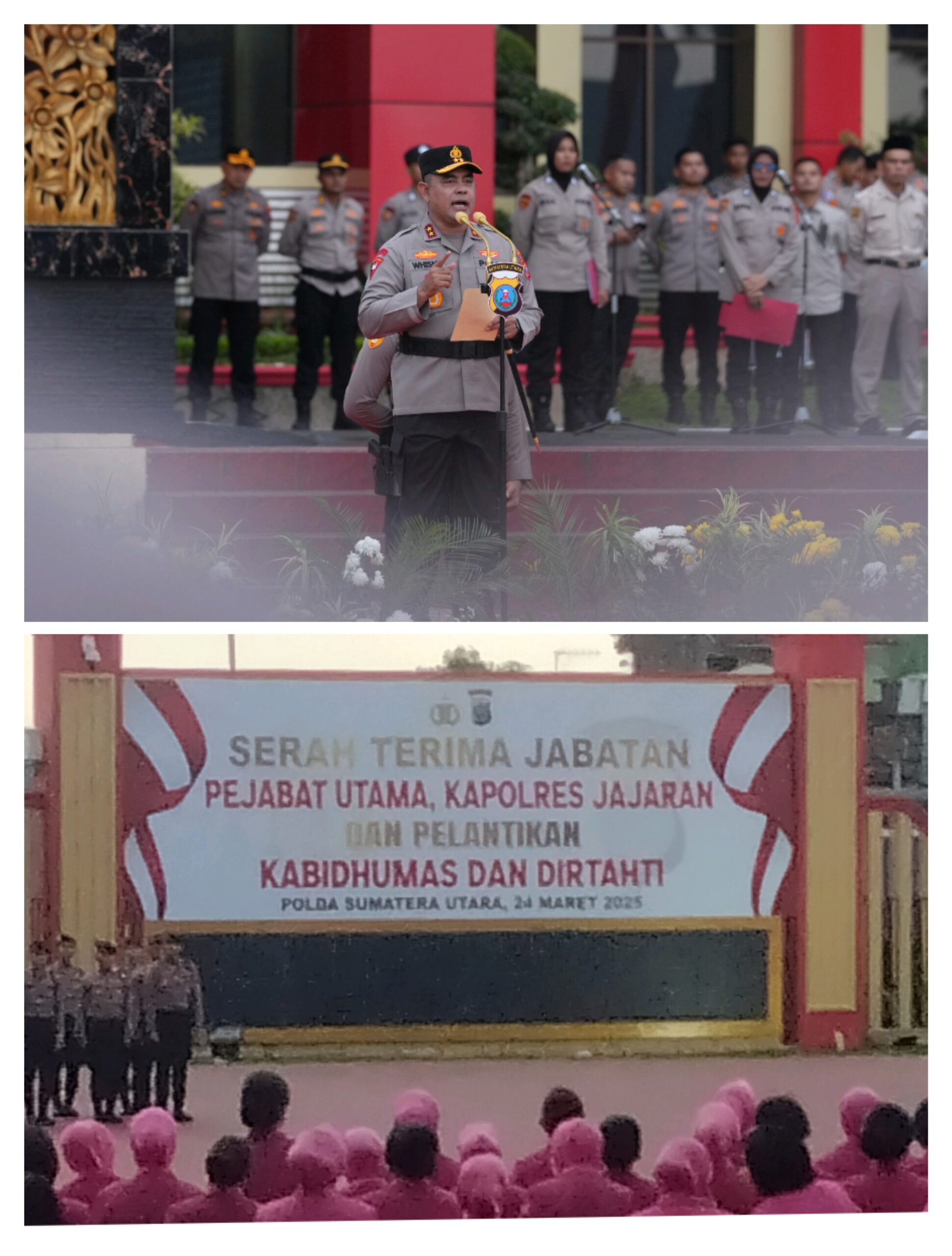 Polda Sumatera Utara menggelar upacara serah terima jabatan Pejabat Utama dan Kapolres Jajaran Polda Sumut yang dipimpin langsung oleh Kapolda Sumut di Lapangan Ks. Tubun, Mapolda Sumut, pada Senin, 24 Maret 2025.