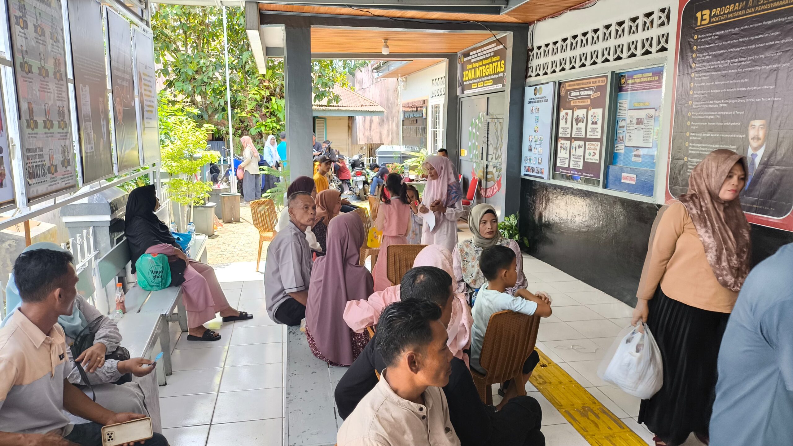 “Hari ini pengunjung meledak sampai-sampai kami harus pakai teras di dalam lapas untuk pengunjung demi rindu mereka tercurahkan sesi pertama 39 WBP dengan keluarga 117 orang sesi kedua 40 orang WBP dengan keluarga 251 orang dengan total pengunjung 308 orang, alhamdulillah membuat hati kami puas dengan senyuman mereka” Ucap supar