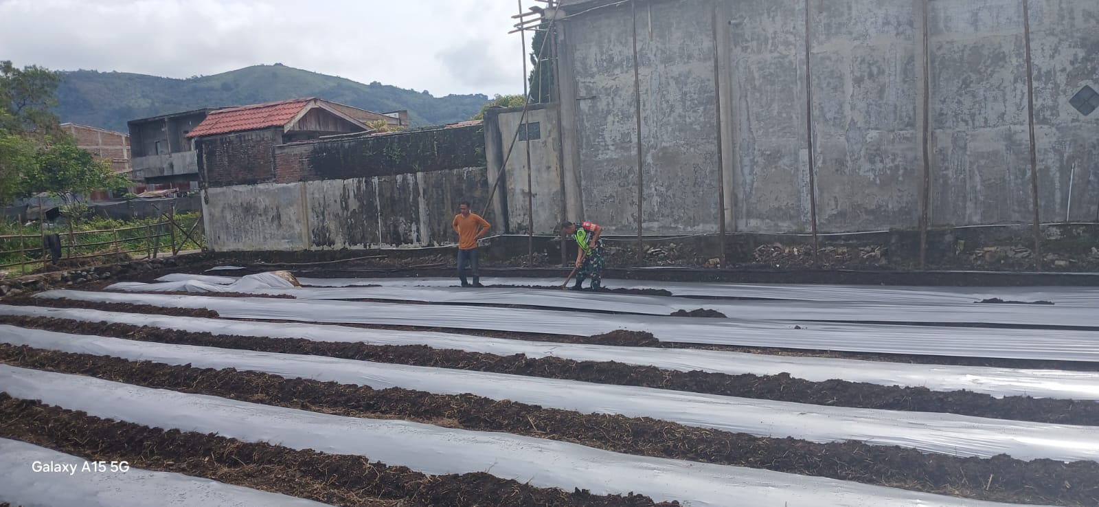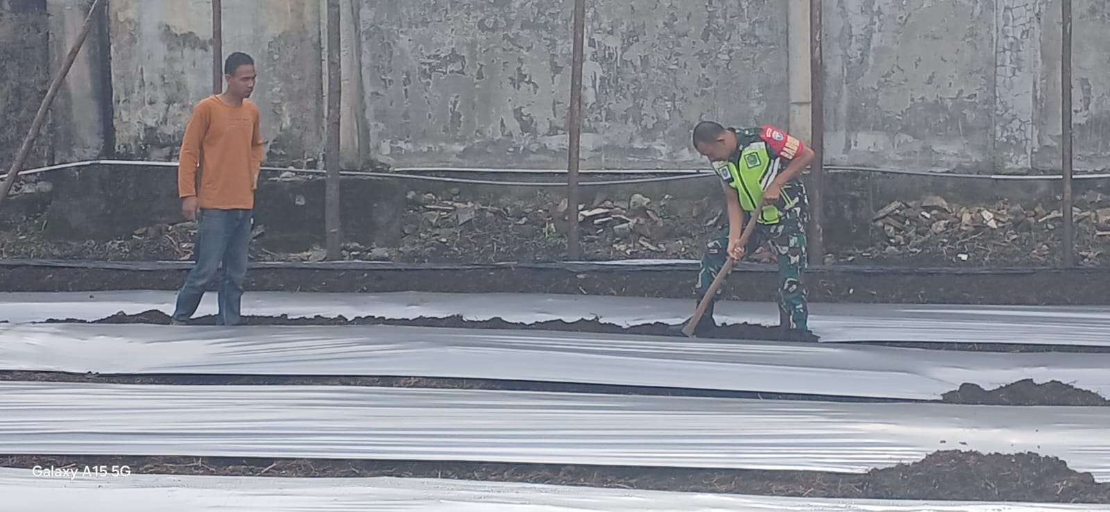 Babinsa Koramil 03/Pegasing, Kodim 0106/Aceh Tengah. Serda Alwin Membantu Masyarat Desa Binaan Memasang mulsa milik Bpk Iwan Untuk tanaman Cabai di Desa Tebes lues, kecamatan Bies, kabupaten Aceh Tengah. Jum’at 11/04/2025.