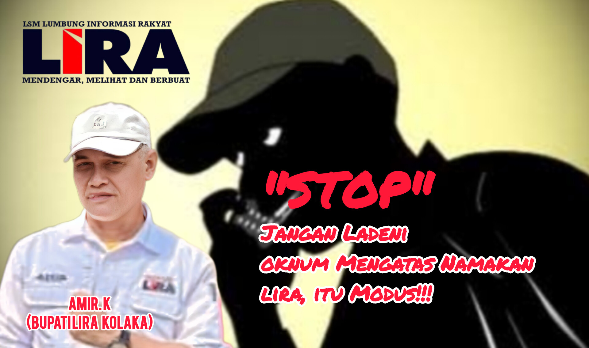 Kepada Media Amir Kaharuddin Selaku penanggung Jawab LSM – LIRA Kabupaten Kolaka,tidak membenarkan jika ada Anggotanya yang menelpon sana-sini untuk meminta uang dengan modus bantuan dan mengatas Namakan Lembaganya, Oknum yang melakukan itu Sengaja mengatas namakan LIRA,”itu tidak benar, Oknum itu sengaja menjual nama LIRA dan meminta sejumlah uang atau bantuan” katanya.