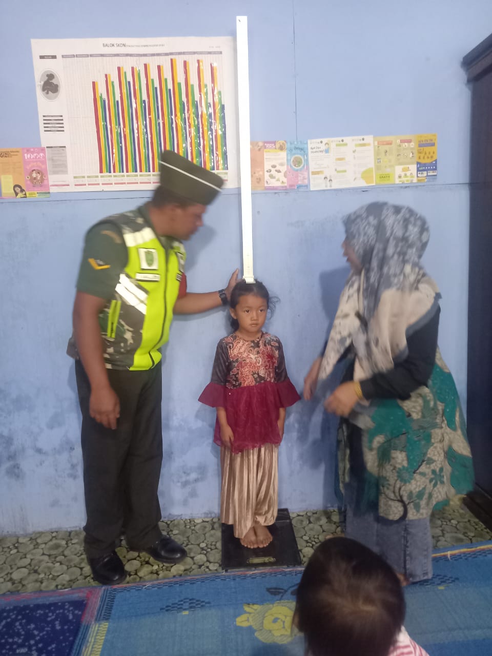 Bintara Pembina Desa (Babinsa) dari Koramil 01/Bandar Kodim 0119/Bener meriah, Serda kamaludin, dampingi kegiatan Pos Pelayanan Terpadu (Posyandu) yang dilaksanakan di Balai Desa Muyang Kute” Senin 19 mei 2025.