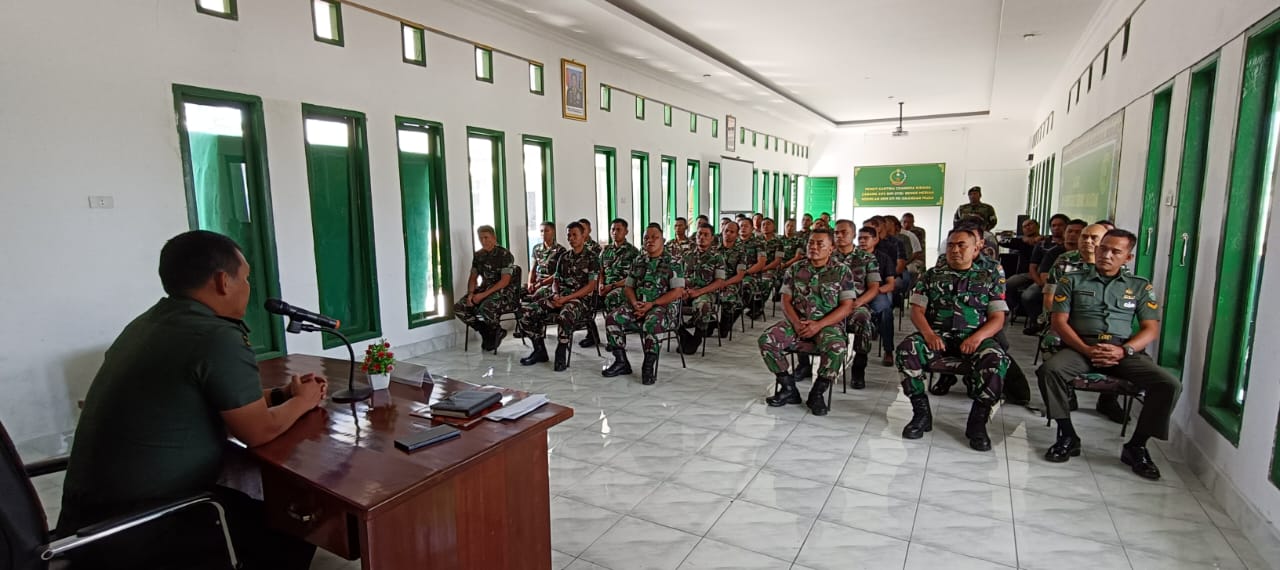 Mengawali arahannya, Letkol Inf Ahmad Fauzi mengajak kepada seluruh Prajurit untuk senantiasa meningkatkan Iman dan Taqwa kepada Tuhan Yang Maha Esa, serta senantiasa mempedomani Santi Aji dalam pelaksanaan tugas sehari-hari. “Karena dengan landasan ini Insya Allah kita senantiasa sesuai dengan koridor dan aturan yang berlaku dalam pelaksanaan tugas sehari-hari”, Ujarnya.