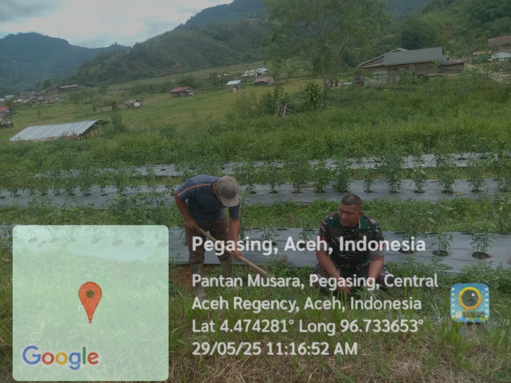 “Koptu manda t pada Nasionaljurnalis.com menyampaikan, peran serta Babinsa, atau Bintara Pembina Desa, sering membantu petani membersihkan lahan cabai sebagai bagian dari tugas pendampingan pertanian.
