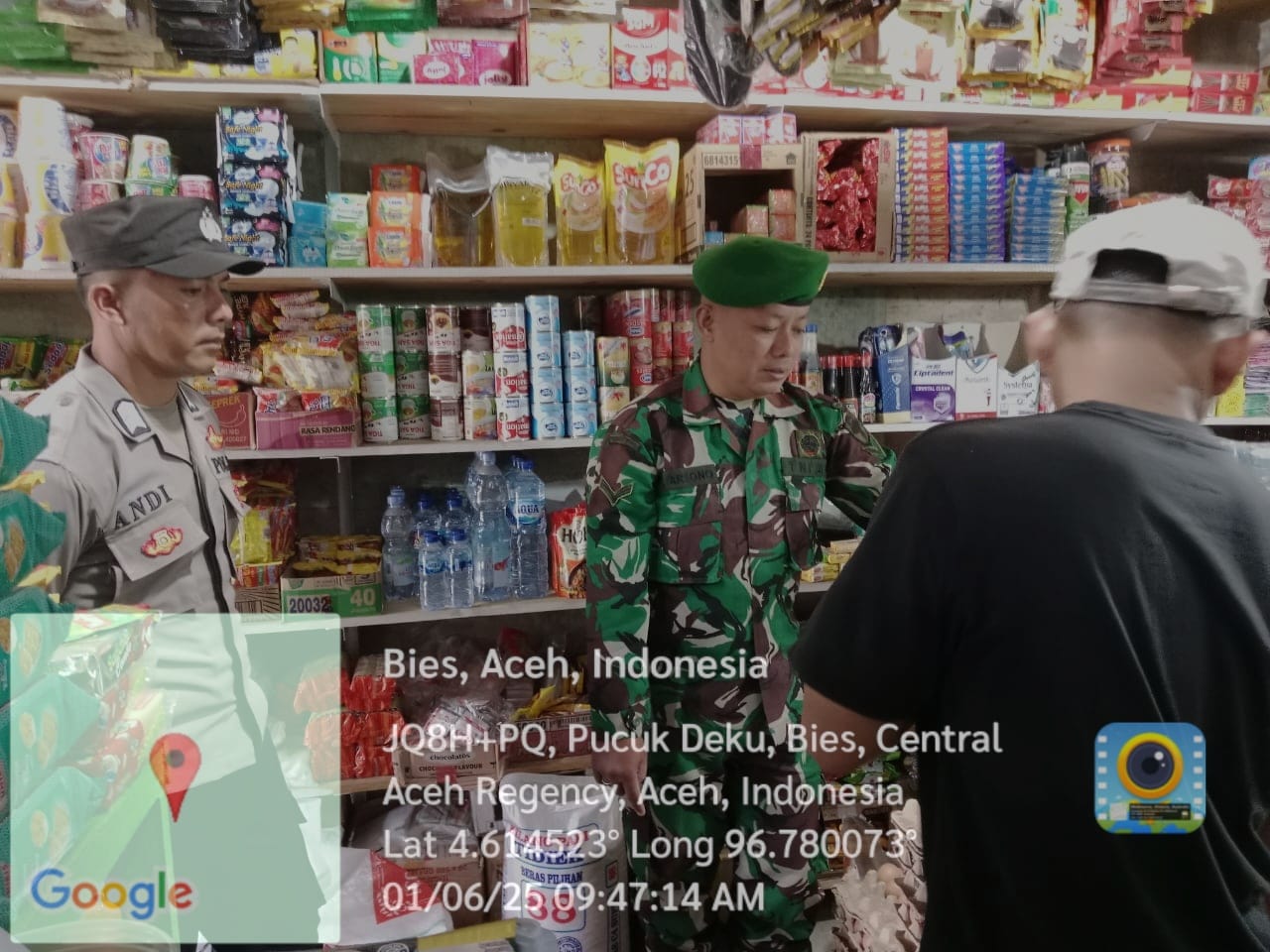 Melaksanakan kegiatan dengan warga binaan berbincang tentang harga kestabilan Sembako di warung milik bpk juanda didesa Pucuk Deku kecamatan Bies, kabupaten Aceh tengah. Senin 02/06/25.