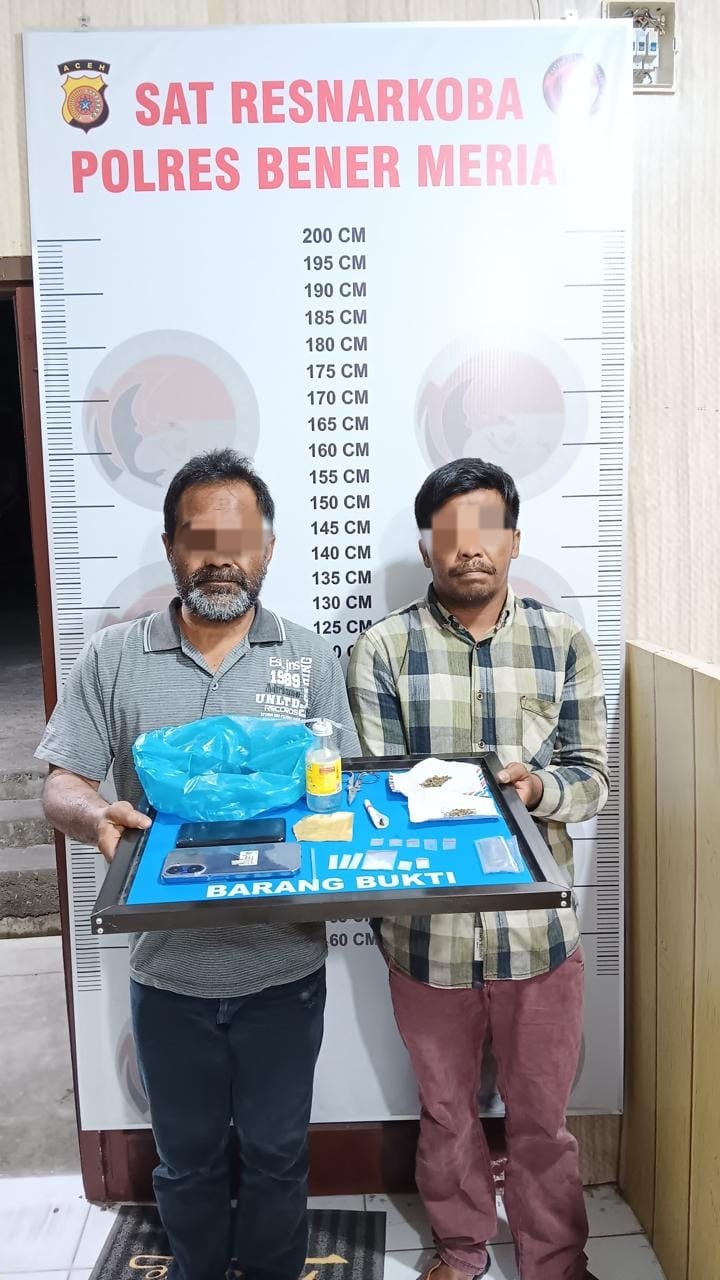 Tim Opsnal Satuan Reserse Narkoba Polres Bener Meriah berhasil mengungkap kasus peredaran narkotika jenis sabu dan ganja di Desa Pondok Baru, Kecamatan Bandar, Kabupaten Bener Meriah. Dua pria yang diduga sebagai pelaku pengedar diamankan dalam penggerebekan pada Rabu malam, 23 Juli 2025, sekitar pukul 22.00 WIB.
