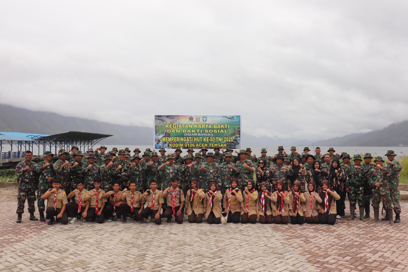 Kodim 0106/ Aceh Tengah gelar kegiatan karya bakti TNI pembersihan Dermaga danau lut tawar dalam rangka peringatan HUT TNI Ke 80 Tahun dengan Tema ” TNI AD Bersatu Dengan Alam Membangun NKRI” bertempat desa kramat mupakat Kec. Bebesen Kab. Aceh Tengah. Senin (15/09/25)