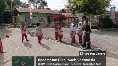 Dalam kegiatan tersebut, Babinsa juga turut melatih anak-anak sekolah berolahraga di SDN 11 Mandrasa Desa Atang Jungket.