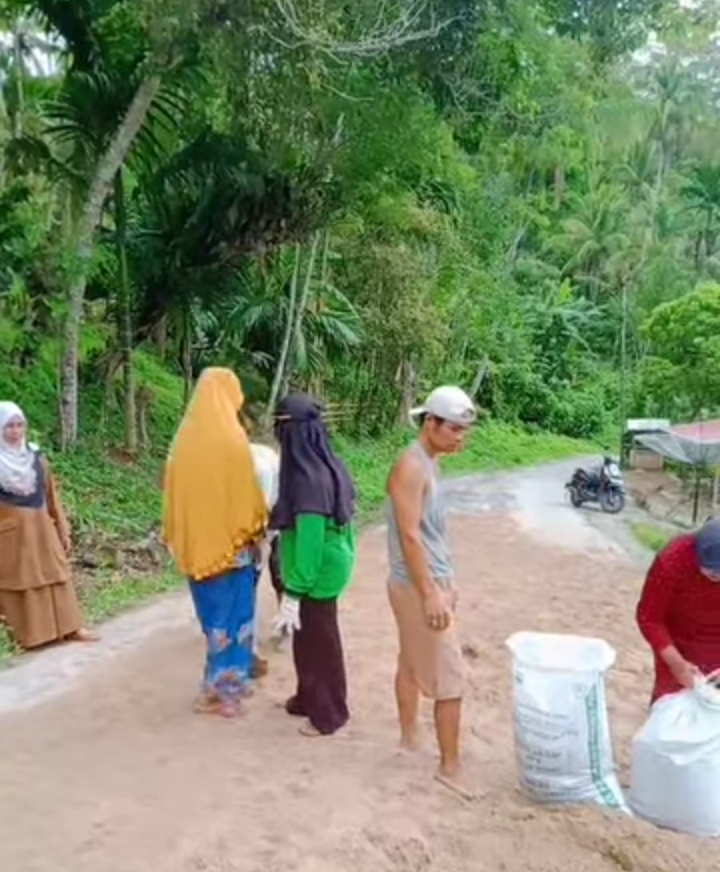 Sijunjung – medianasionaljurnalis.com Badan Kontak Majelis Taklim Nagari Batu Manjulur Berjibaku secara bersama sama warga setempat bergotoroyong memperbaiki jalan Kabupaten yang telah lama rusak yang tidak kunjung di perbaiki tepatnya di Jalan Jirek oleh Pemerintah Kabupaten Sijunjung , saat kita konfermasi kepada ketua BKMT Ibuk Nurbaidar melalui Via WA Beliau menyampaikan bahwa kami memperbaiki jalan itu dengan mempergunakan Uang sumbangan dari masyarakat terkumpul Rp.400.000, dan Uang Infak BKMT Rp.900.000,- untuk Membeli tanah timbunan ( cadas ) dan bergotoroyong bersama selama 2 hari ( Minggu dan Senin ) 28-29 September 2025 .