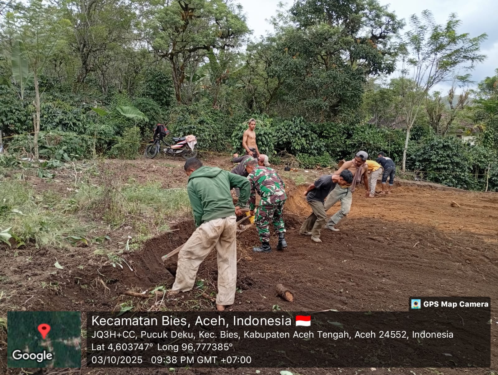 Babinsa Koramil 03/Pegasing Ajak Warga Pucuk Deku Gotong Royong Buat Kolam Ikan Nila