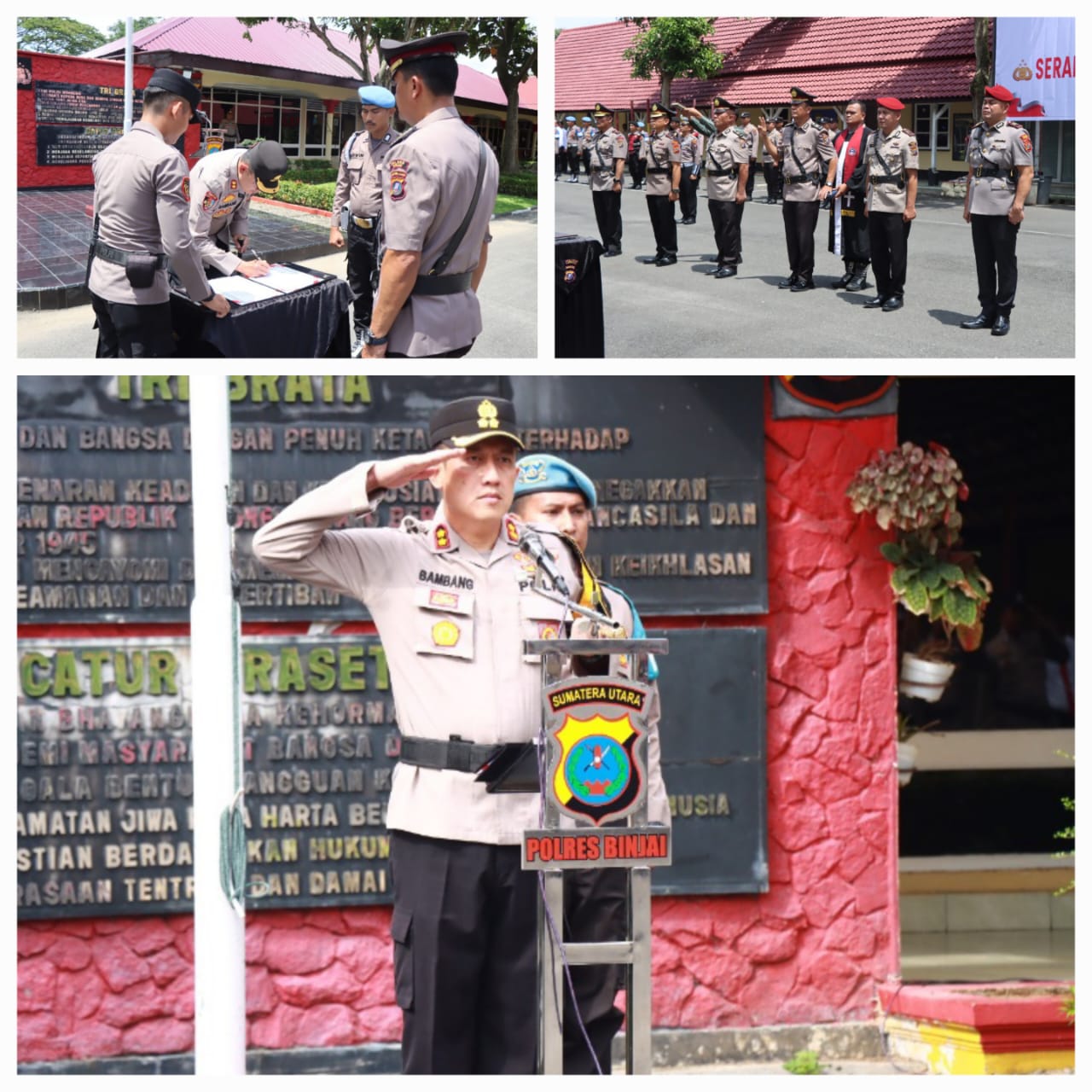 Kapolres Binjai menyerahkan jabatan dari pejabat lama kepada pejabat baru antara lain :
