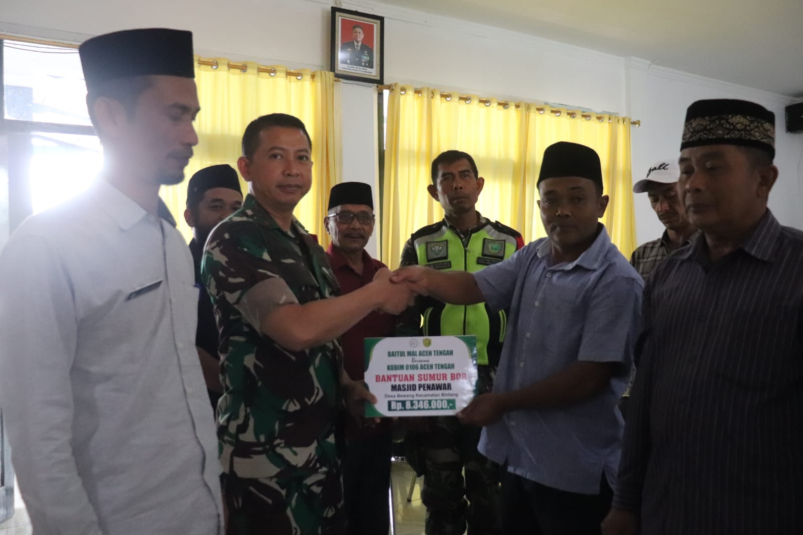 Komisioner Baitul Mal Aceh Tengah, Abdul Aziz mengatakan kolaborasi dengan TNI ini merupakan wujud kepedulian lembaga dalam mendukung sarana ibadah masyarakat.