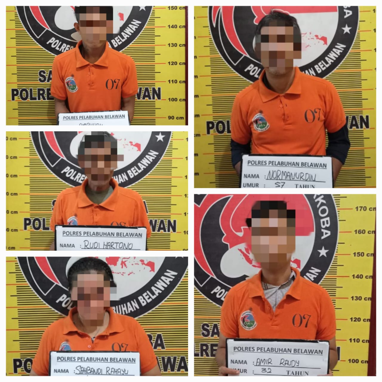 Polres Pelabuhan Belawan berhasil mengamankan lima orang pengguna narkoba saat melakukan penyisiran lokasi rawan tawuran di Jalan Selebes, Belawan, pada Rabu (15/10/2025) sore.