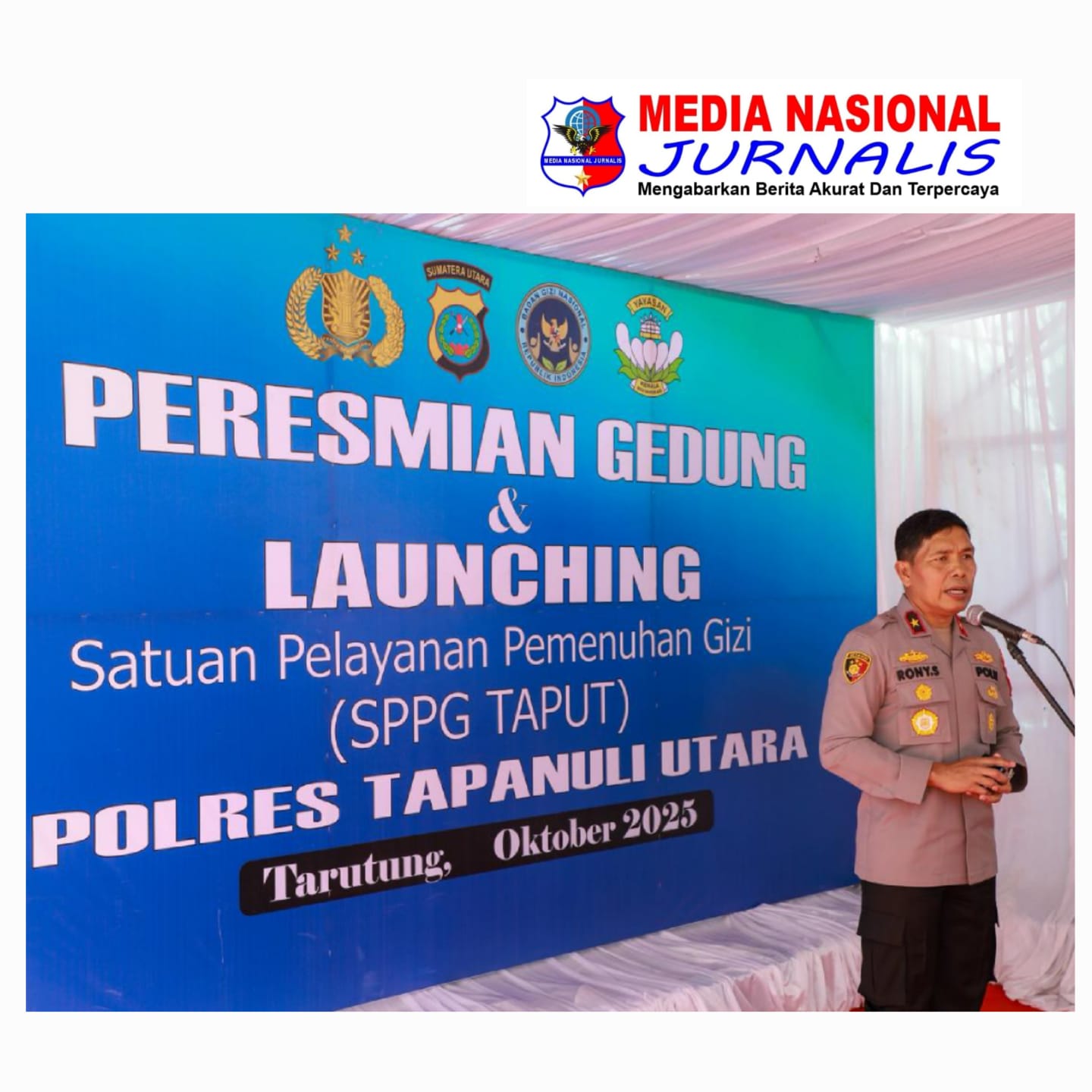 Kepolisian Daerah Sumatera Utara (Polda Sumut) terus menunjukkan komitmennya dalam mendukung program nasional peningkatan kualitas gizi bagi anak bangsa. Hal ini diwujudkan melalui peresmian Satuan Pelayanan Pemenuhan Gizi (SPPG) Polres Tapanuli Utara yang dilaksanakan pada Rabu (29/10/2025), pukul 09.30 WIB, bertempat di Gedung SPPG Polres Taput, Jalan KS. Tubun, Kelurahan Hutatoruan X, Kecamatan Tarutung.