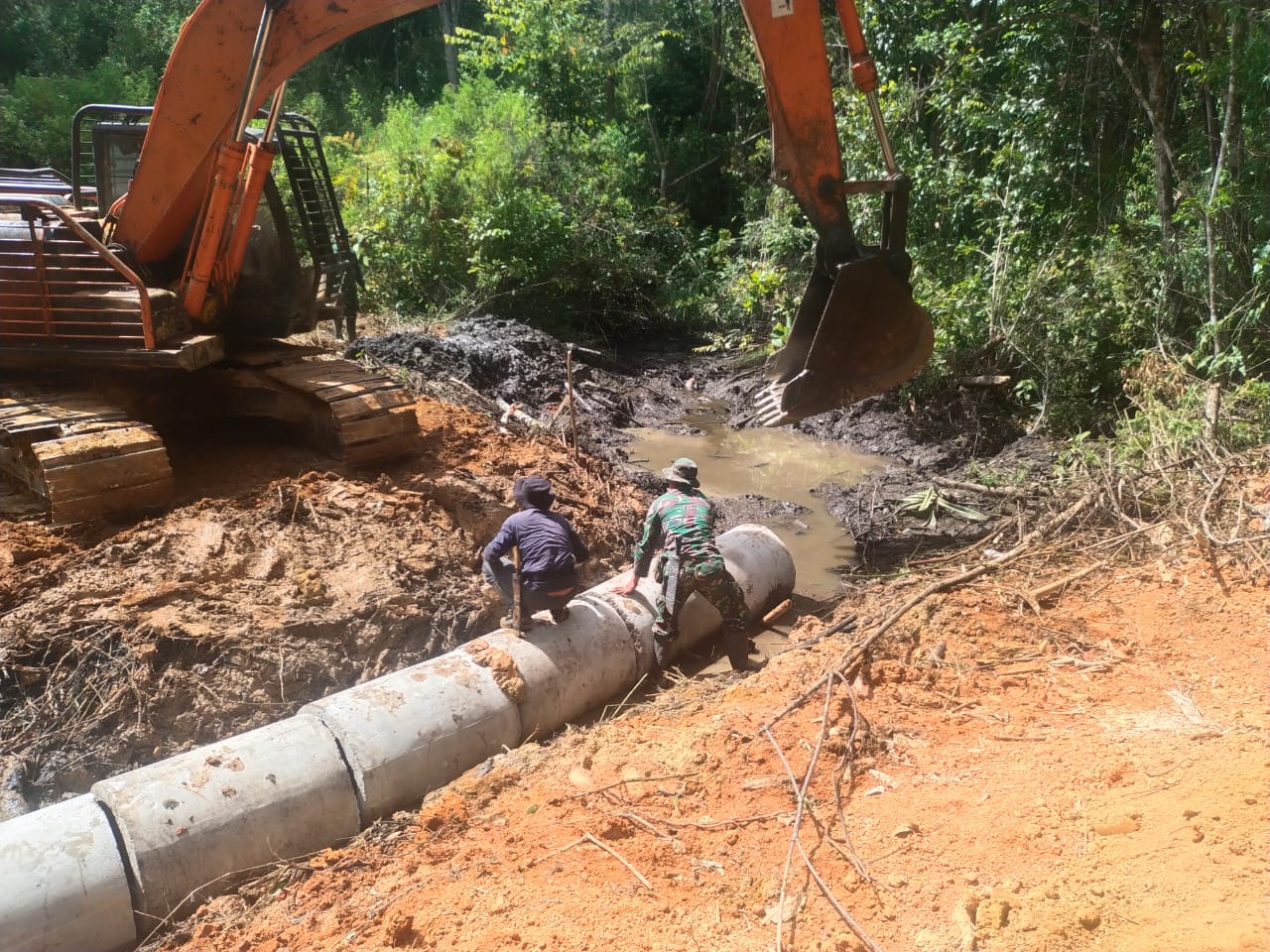 Disela waktunya, salah satu anggota Satgas Serka Tuah Hasibuan mengatakan pengerjaan gorong-gorong ini sengaja dipercepat pemasangannya, karena apabila hujan pada malam hari lokasi akan banjir dan akan menghambat pengerjaan.