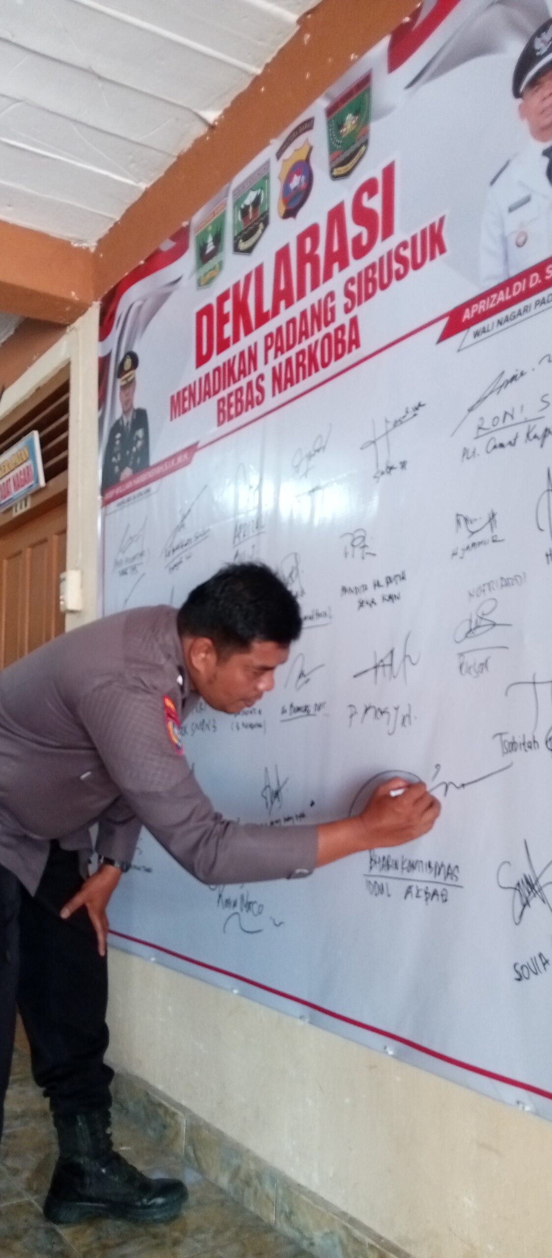 Kegiatan deklarasi dihadiri lansung Kapolres Sijunjung yang diwakili oleh Kabag OP Budi Rilvantino ,Kepala BNN Kota Sawahlunto , Sijunjung dan Darmasraya Bapak Bagus.W Kesbangpol Sijunjung didampingi oleh Bapak camat Kupitan , Kapolsek IV Nagari , Babinkamtibmas dan Babimsa Nagari Padang Sibusuk dan beberapa orang anggota Narkoba Polres Sijunjung.