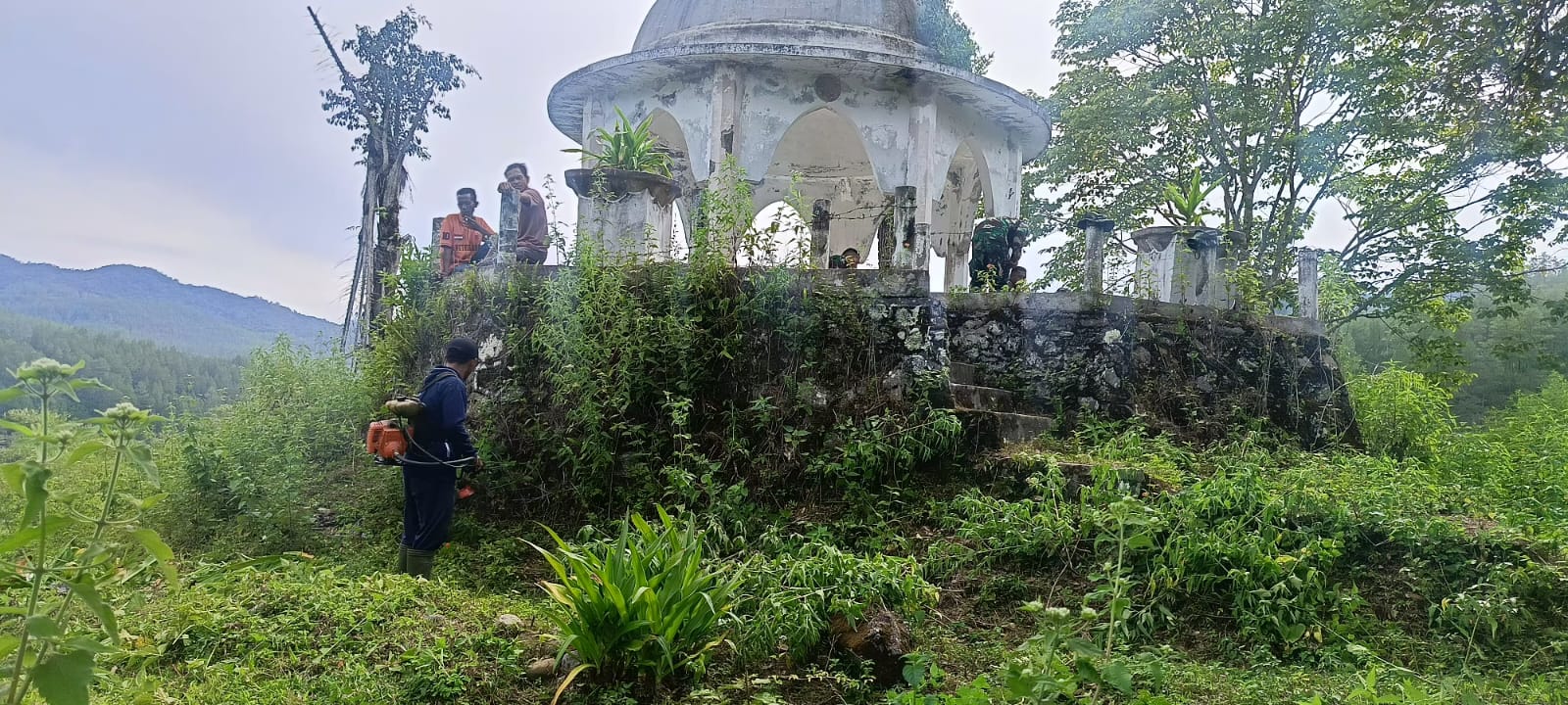 Warga setempat turut ambil bagian dalam kegiatan tersebut dengan bergotong royong membersihkan area sekitar makam.