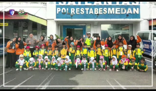 Suasana penuh keceriaan mewarnai halaman Satlantas Polrestabes Medan, ketika puluhan anak-anak dari TK Swasta Darul Ilmi Murni melakukan kunjungan edukatif atau *field trip* pada hari ini. Kegiatan tersebut merupakan bagian dari program pembelajaran pengenalan etika berlalu lintas sejak usia dini.