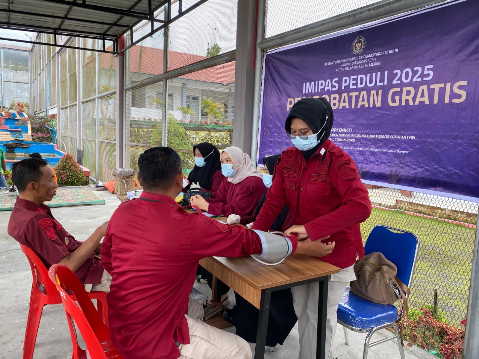 13 November 2025 – Dalam rangka memperingati Hari Bakti Kementerian Imigrasi dan Pemasyarakatan (Kemenimipas) ke-1 Tahun 2025, Rumah Tahanan Negara (Rutan) Kelas IIB Bener Meriah, di bawah Kantor Wilayah Direktorat Jenderal Pemasyarakatan (Kanwil Ditjenpas) Aceh, sukses menggelar kegiatan pengobatan gratis bertajuk “IMIPAS PEDULI 2025.”