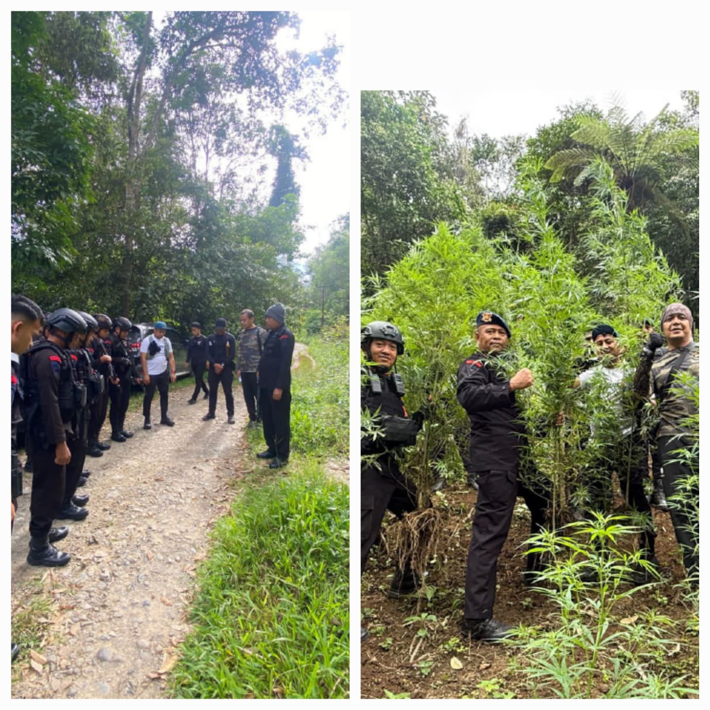 (12/11/2025) – Dalam upaya memberantas peredaran dan penyalahgunaan narkotika di wilayah Sumatera Utara, Satuan Brimob Polda Sumut melalui Batalyon C Pelopor kembali menunjukkan komitmennya terhadap pemberantasan narkoba dengan melaksanakan operasi pemusnahan ladang ganja seluas kurang lebih 10 hektar di kawasan perbukitan Tor Sihite, Kecamatan Penyabungan Timur, Kabupaten Mandailing Natal, pada Rabu (12/11/2025).