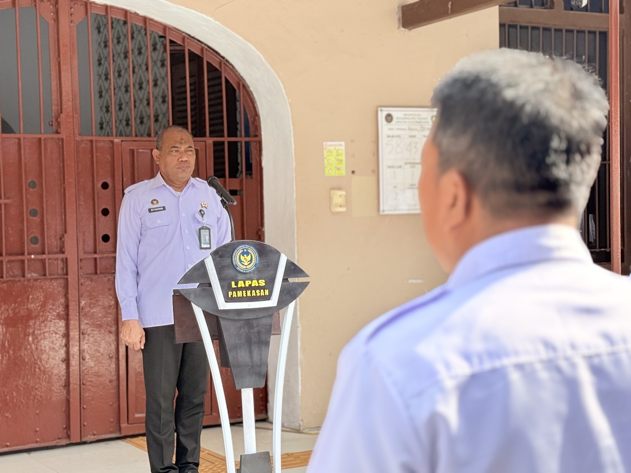 Pamekasan – Hari Kamis (20 November 2025), Lapas Pamekasan, Kantor Wilayah Direktorat Jenderal Pemasyarakatan Jawa Timur, melaksanakan apel pagi yang dirangkaikan dengan kegiatan penyerahan Penghargaan Pegawai Teladan Triwulan IV, bertempat di halaman Lapas Pamekasan. Kegiatan dipimpin langsung oleh Syukron Hamdani, Kepala Lapas Pamekasan.