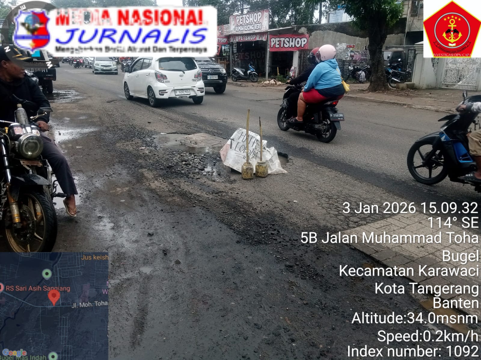 nasionaljurnalis, Tangerang – Jalan Raya Muhammad Toha, tepatnya di Kelurahan Nambo Jaya yang menghubungkan Kecamatan Karawaci hingga Nagrak, Kota Tangerang menjadi perhatian masyarakat akibat banyaknya jalan berlubang dan Rusak yang mengancam keselamatan pengguna jalan