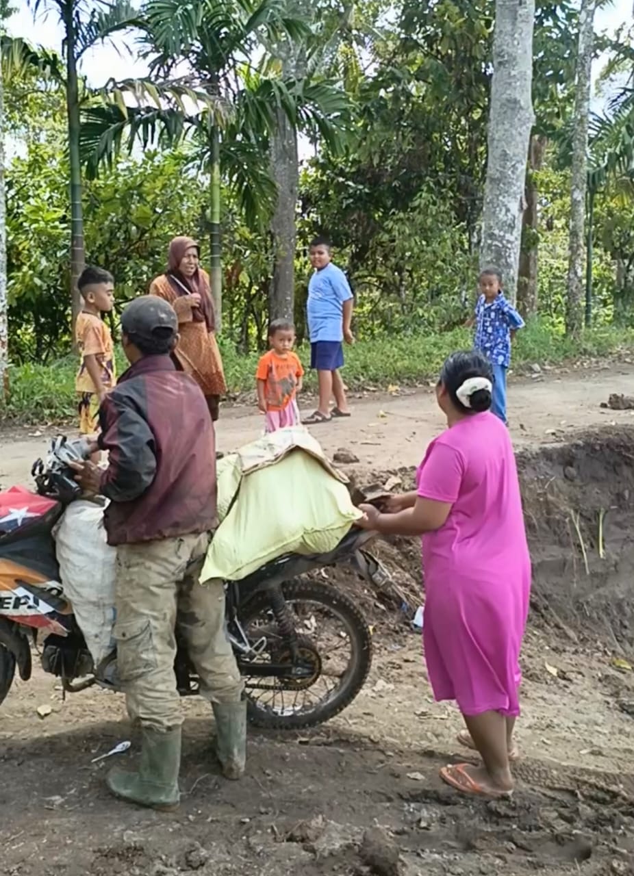 Namun, buruknya akses jalan membuat proses pengangkutan menjadi sulit dan berisiko. Bahkan, beberapa warga dilaporkan terjatuh saat melintas di lokasi tersebut.