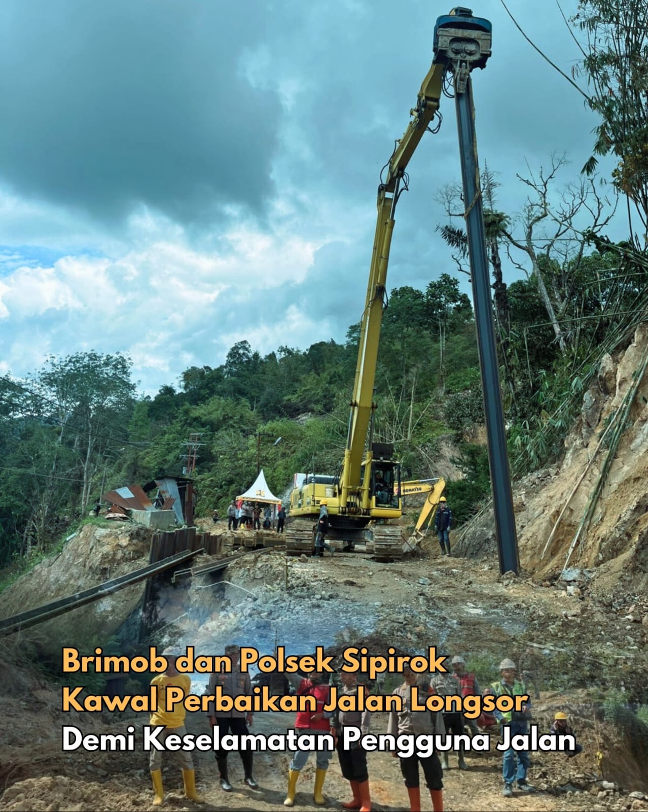 Personel Brimob Batalyon C bersama Personel Polsek Sipirok melaksanakan pengaturan lalu lintas di Dusun Pengkolan, Desa Luat Lombang, Kecamatan Sipirok, Jumat (09/01/2026). Kegiatan yang dimulai sejak pukul 10.00 WIB tersebut dilakukan guna menjaga kelancaran dan keselamatan pengguna jalan di tengah proses perbaikan jalan pascalongsor.