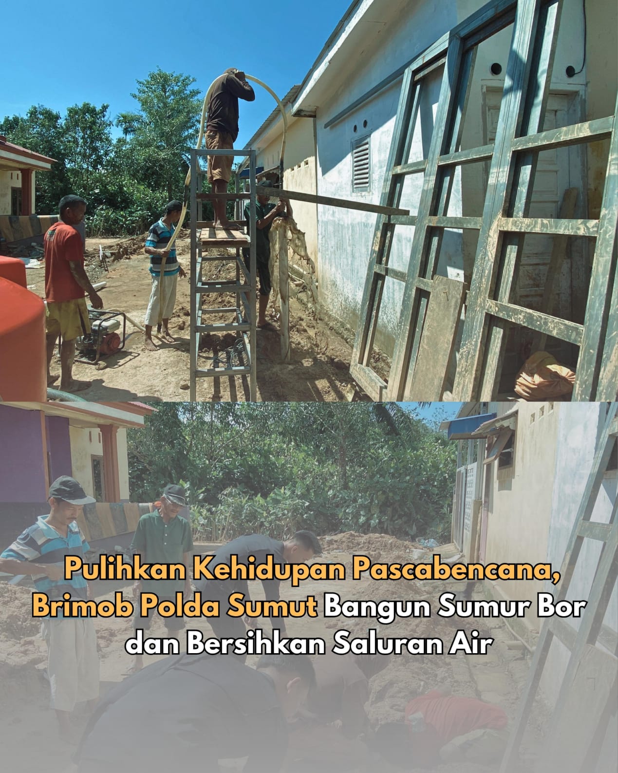 Sebagai wujud kepedulian dan kehadiran negara di tengah masyarakat pascabencana, personel Batalyon A Pelopor Satuan Brimob Polda Sumatera Utara melaksanakan kegiatan kemanusiaan berupa pembangunan fasilitas air bersih serta pemulihan saluran air di wilayah Kabupaten Tapanuli Tengah, Minggu (11/1/2026).