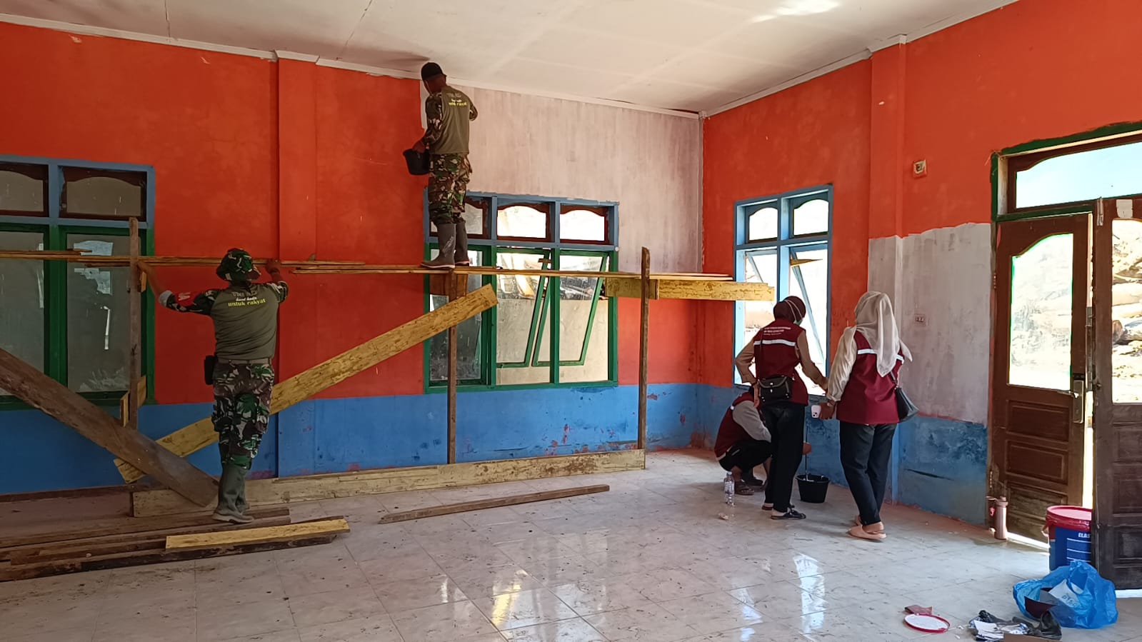 Kehadiran TNI bersama mahasiswa dan masyarakat dalam kegiatan ini menunjukkan sinergi dan semangat gotong royong dalam membantu pemulihan fasilitas umum pascabencana, khususnya yang berkaitan langsung dengan kebutuhan pendidikan dan ibadah warga.