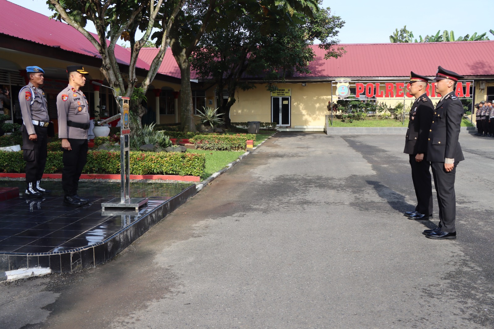 Upacara Pemberian Penghargaan Tanda Kehormatan Satya Lencana Pengabdian Polri kepada personel Polres Binjai di laksanakan di lapangan apel, jalan Sultan Hasanuddin No.1 Binjai, Senin (19/1/26) pukul 08.30 wib.