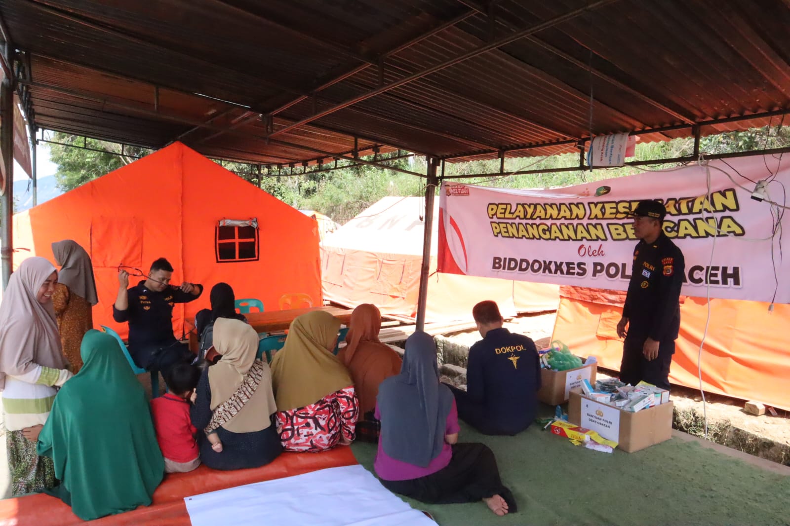 Kegiatan kemanusiaan tersebut dipusatkan di Posko Pengungsian Kampung Kala Segi dan dilaksanakan oleh tim medis Polres Aceh Tengah yang didukung tenaga kesehatan dari Pusdokkes Mabes Polri yang diperbantukan di wilayah hukum Polres Aceh Tengah.