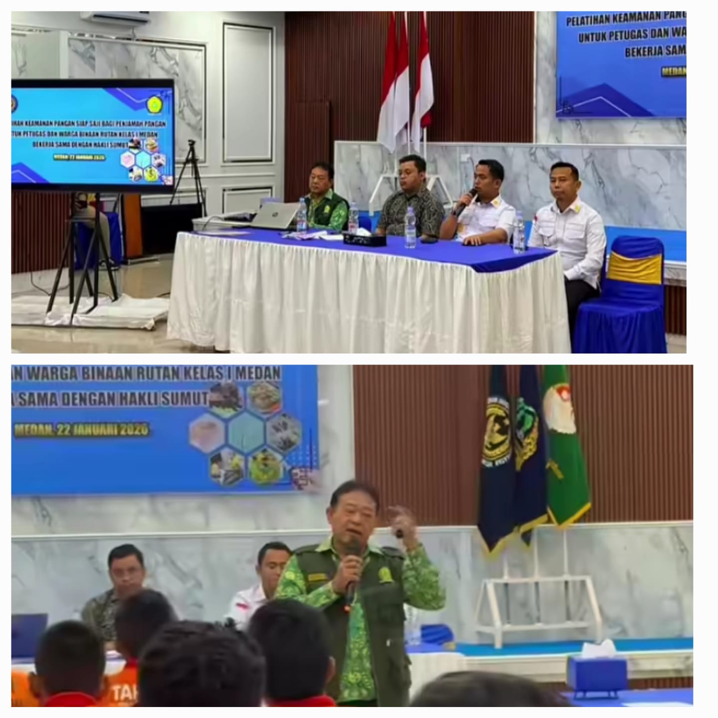 Dalam upaya meningkatkan kualitas layanan pemasyarakatan sekaligus menjamin keamanan konsumsi makanan bagi warga binaan, Rumah Tahanan Negara (Rutan) Kelas I Medan menggelar Pelatihan Keamanan Pangan Siap Saji bagi Penjamah Pangan, Kamis (22/01/2026), bertempat di Aula Saharjo Rutan Kelas I Medan.