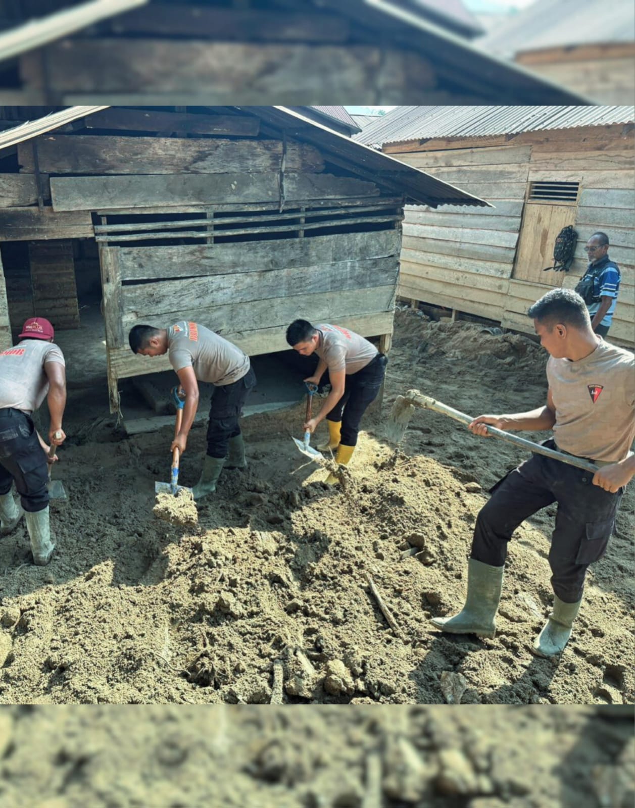 Kegiatan difokuskan pada pembersihan rumah warga yang terdampak material longsor serta perbaikan fasilitas ibadah yang menjadi kebutuhan penting masyarakat. Di Desa Aek Ngadol dan Desa Huta Godang, personel Brimob bahu-membahu membersihkan rumah warga dari timbunan tanah dan pasir, sekaligus membuat parit untuk mencegah genangan dan dampak susulan.