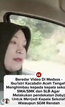 Pada hari senin tanggal 02-02-2026 awak media ini menemui ibu Gustins Fitri kepala puskesmas lut tawar konfirmasi terkait vidio yang beredar terkait ada nada mengajak dan mengkondisikan karna dalam waktu dekat ada mau pelantikan kepala-kepala sekolah dan sangat di sayangkan ibu tersebut istri dari muslim kacapdin aceh Tengah tetapi jika yang berbicara tersebut bukan dari istri kacapdin ya tentunya tidak ada masalah.