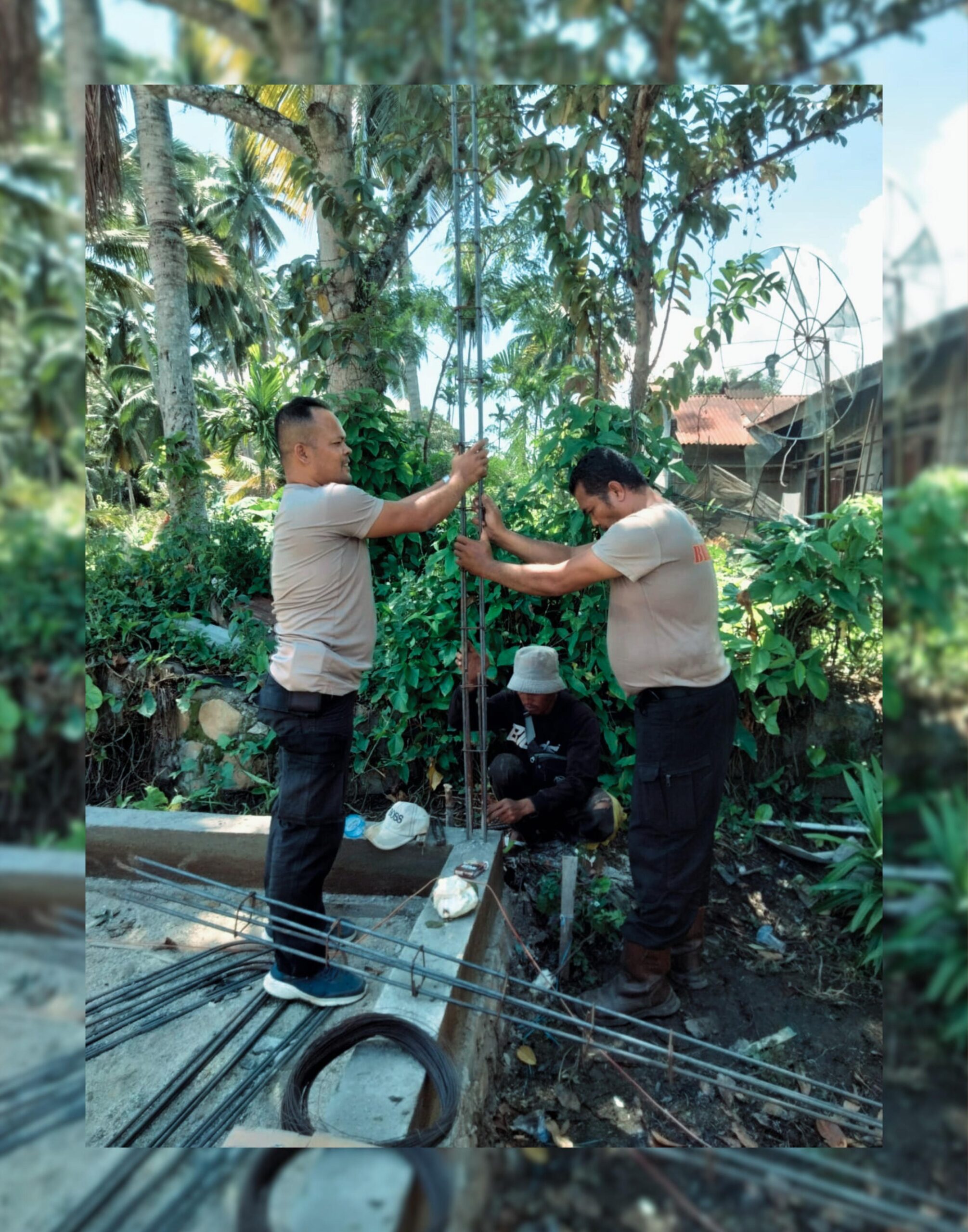 Dipimpin oleh Danton I Kompi 1 Batalyon C, IPTU Roy Sandri Pohan, S.H., personel Brimob melaksanakan pemasangan besi cor pondasi serta pemadatan timbunan tanah lantai pada pembangunan rumah swadaya hunian sementara ke-12, ke-13, dan ke-14. Setiap tahapan pekerjaan dilakukan dengan penuh ketelitian untuk memastikan kekuatan dan keamanan bangunan.