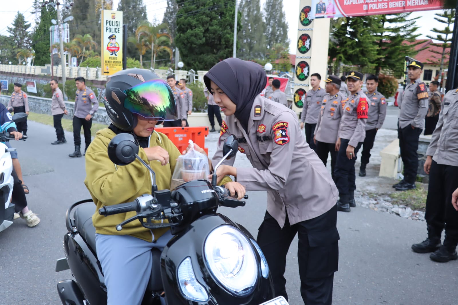 Dengan penuh semangat kebersamaan, para mahasiswa bersama personel Polres Bener Meriah membagikan takjil kepada masyarakat dan pengendara yang melintas. Kegiatan ini tidak hanya menjadi bentuk kepedulian sosial, tetapi juga sebagai sarana memperkuat nilai keimanan dan kedekatan Polri dengan masyarakat di bulan suci Ramadan.