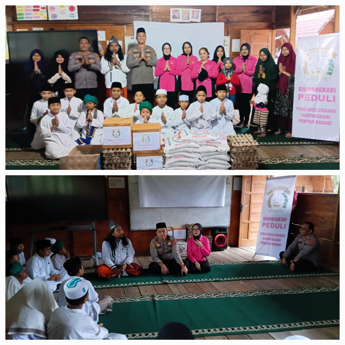 Kunjungan Kapolres Pakpak Bharat AKBP Muhammad Agustiawan, S.T., S.I.K.,.M.H di dampingi Ketua Bhayangkari Cabang Pakpak Bharat Ny. Ratih M. Agustiawan, Kasat Binmas AKP Gembira Sembiring, Ps. KBO Binmas Aipda M.Rasoki Siregar, Ps. Kasubbid Penmas Si Humas Aiptu Widodo, Pengurus Bhayangkari dan Bhabinkamtibmas Polsek Salak Brigpol Bangkit Cibro yang di sambut pengurus Ponpes Tahfidz Qur’an Baital Makmur Ustadz Hasby Boangmanalu dan para Santriawan/ti.