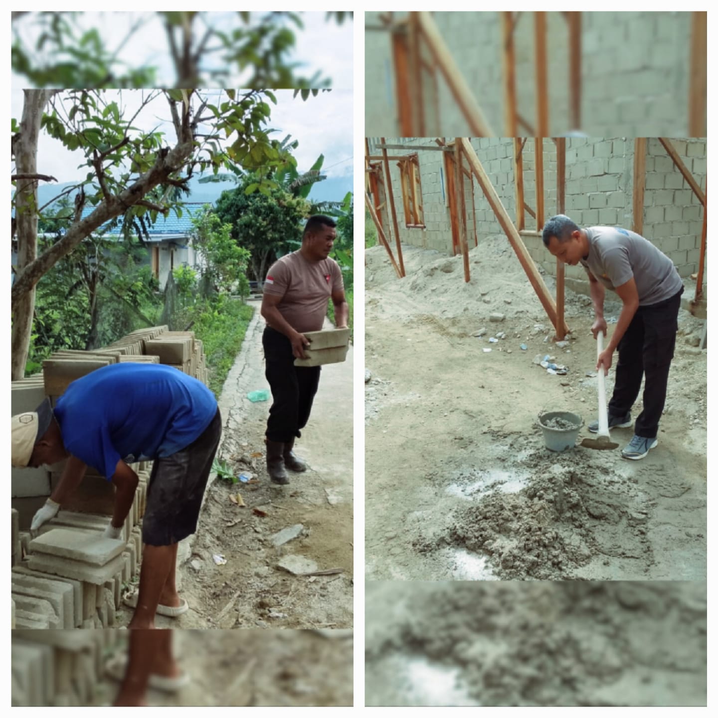 Dalam pelaksanaannya, personel Brimob terlibat langsung dalam pemasangan batako dinding rumah, mengaduk pasir dan semen, hingga mengangkat material bangunan. Kehadiran aparat bersama warga menciptakan suasana gotong royong yang kuat, sekaligus mempercepat progres pembangunan hunian tetap yang aman dan layak.