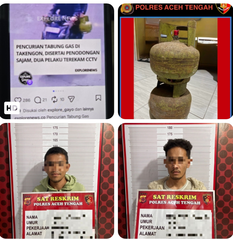 Kedua pelaku masing-masing berinisial ZA (24) dan ZN (27), yang merupakan warga Kecamatan Bebesen, Kabupaten Aceh Tengah. Dari tangan keduanya, petugas mengamankan barang bukti berupa dua unit tabung gas LPG 3 kilogram yang diduga merupakan hasil tindak pidana pencurian.