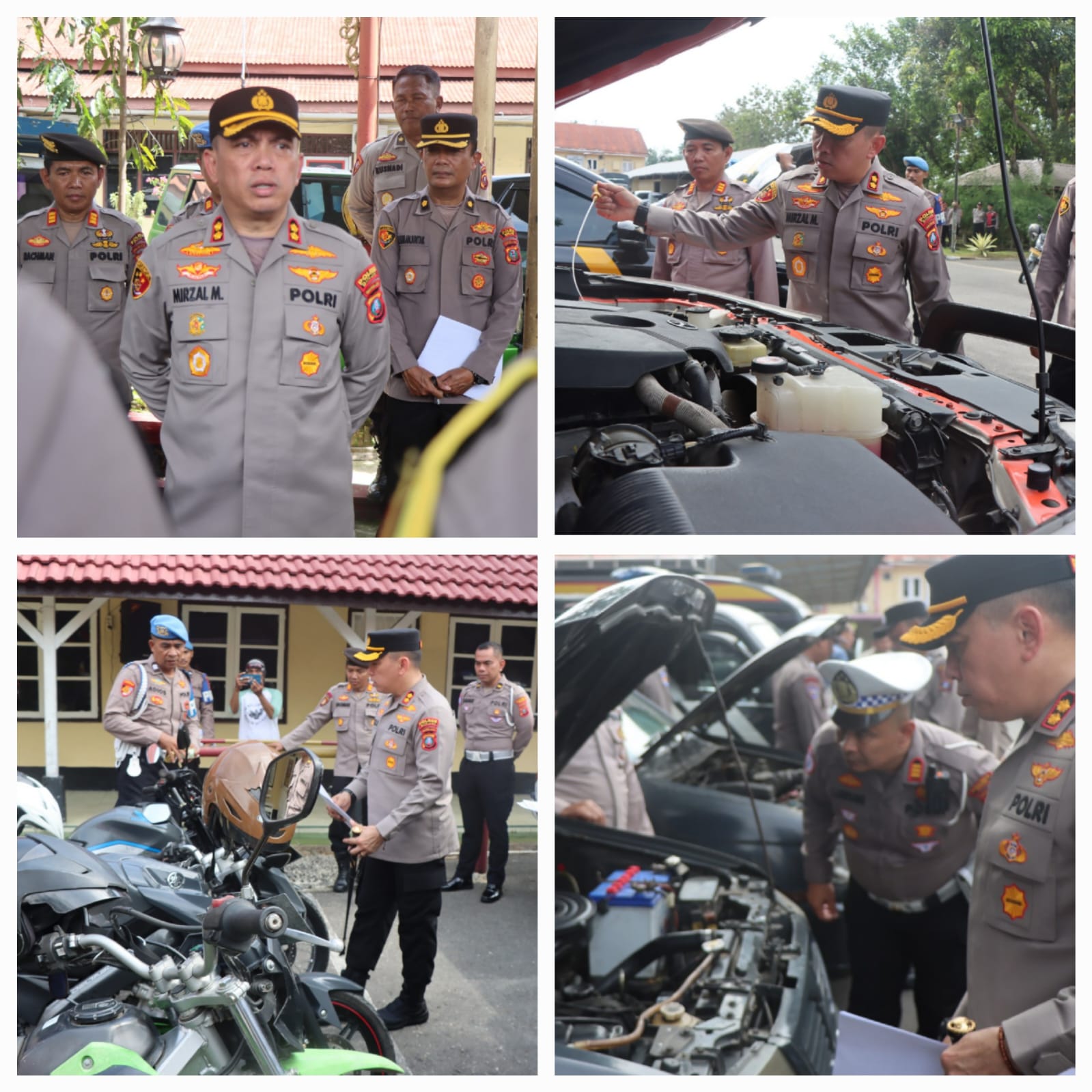 Menjelang Operasi Ketupat Toba 2026 dalam rangka pengamanan hari raya Idhul Fitri 1447 Hijriah, Kapolres Binjai AKBP Mirzal Maulana, S.I.K., melakukan pengecekan langsung terhadap kenderaan dinas yang ada di wilayah hukum polres Binjai, di lapangan apel polres Binjai jalan Sultan Hasanuddin No.1 Binjai, Kamis (26/2) pukul 09.00 wib.