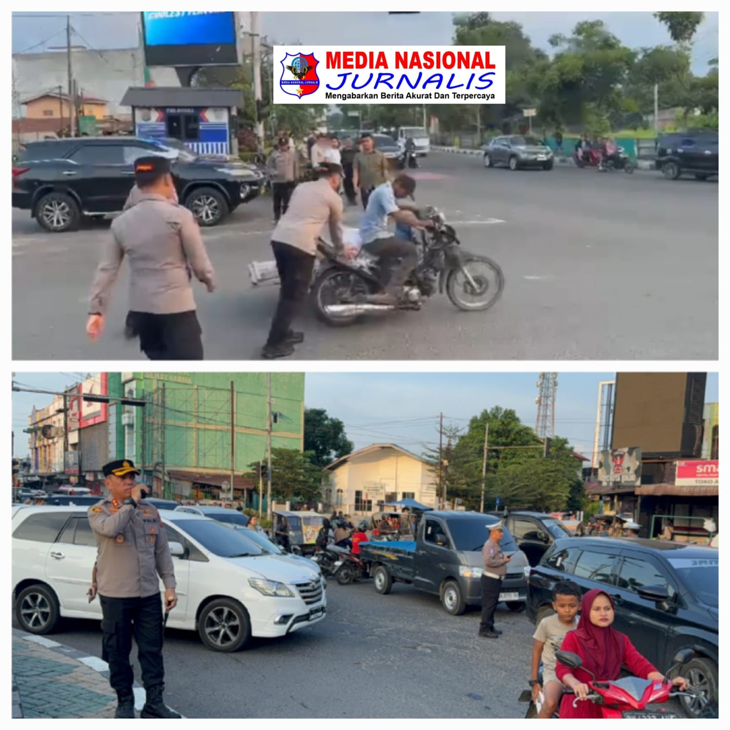 Di tengah kesibukan pengaturan arus lalu lintas dan kegiatan pelayanan pembagian takjil dari salah satu kelompok masyarakat di Bundaran Tugu Kota Binjai, Kapolres Binjai menunjukkan kepedulian humanisnya kepada warga.